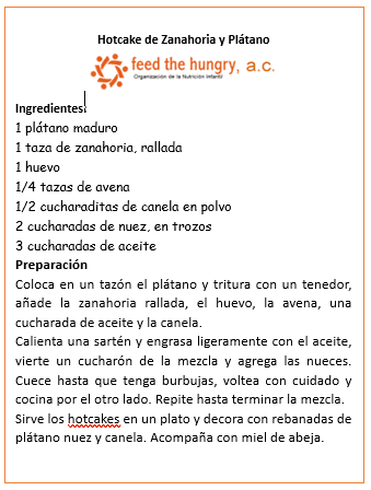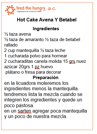Estas recetas, cuidadosamente elaboradas con ingredientes asequibles y locales, ofrecen una deliciosa manera de incorporar verduras, cereales y un dulce natural a la dieta infantil. El Hot Cake de Avena y Betabel combina amaranto, avena y remolacha vibrante para un desayuno rico en fibra, lleno de color y antioxidantes. Por otro lado, el Hot Cake de Zanahoria y Plátano combina zanahoria, plátano maduro y avena para una opción naturalmente dulce y rica en vitaminas que encantará a los niños pequeños.